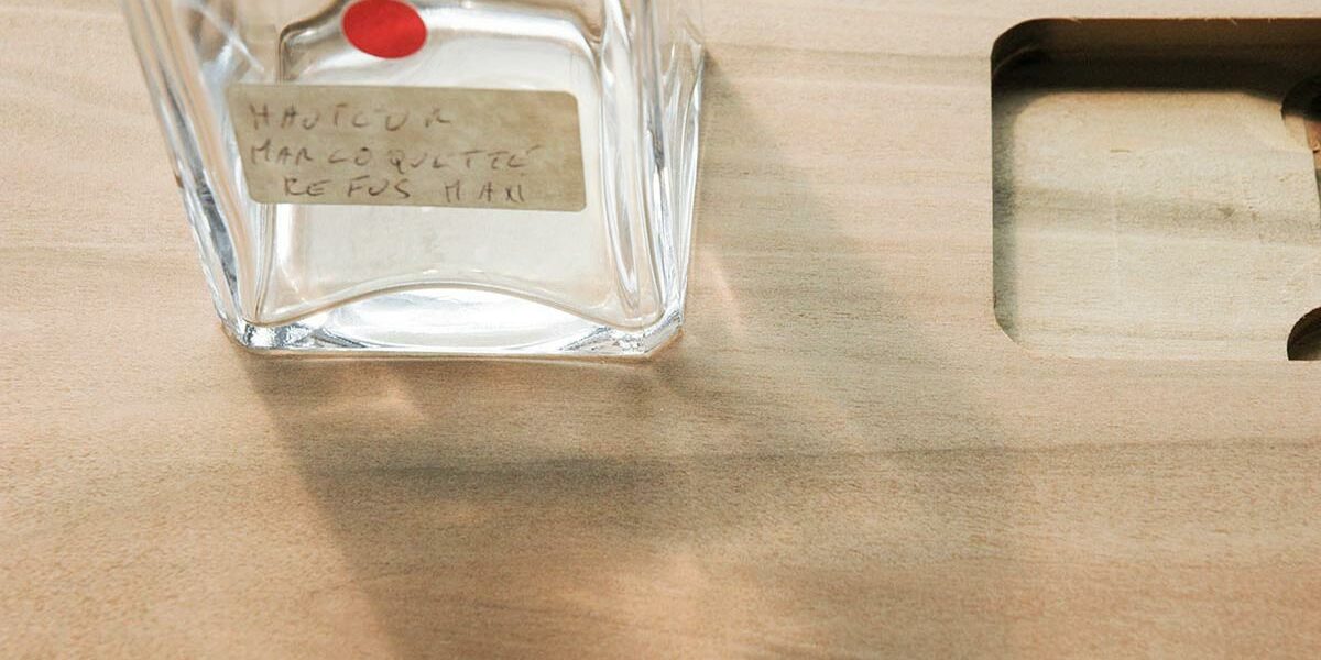 Partant d’un dessin aux formes cubiques relativement simple, il fallait faire un assemblage de grande précision. D’autre part le prototypage portait sur les dimensions exactes de la défonce sur la face supérieure des socles, pour que cela coïncide avec les dimensions des bouteilles de parfum.