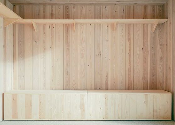 Red pine all over est une commande de mobilier originaux en sapin massif qui s’intègre dans l’atelier attenant à une maison individuelle.